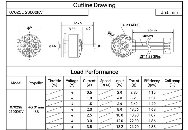 | 0702 Brushless Motors | 0702SE Brushless Motors | |